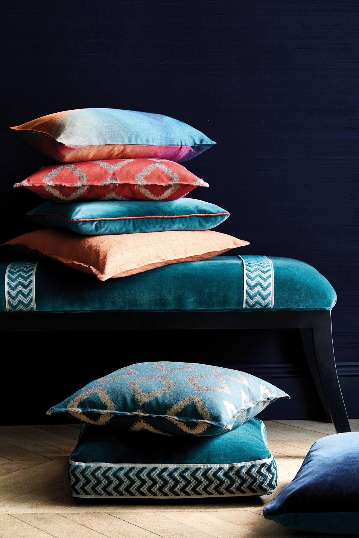 A smart and sophisticed fabric. Cullinan's ground colours are rich and intense, sometimes shot to give a Thai silk effect. The luxurious pearl, silver and gold ikat styled jacquard reflect the jewel that has inspired the design.