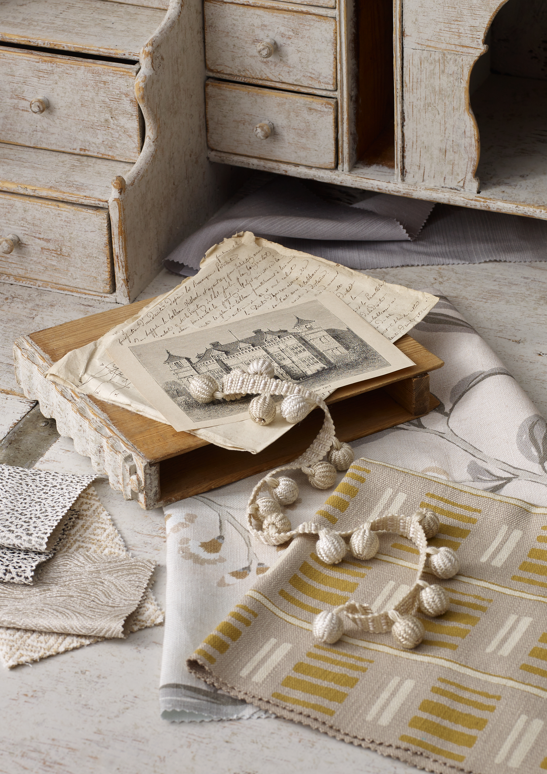 A new twist to the decorative drop trim and a first for the James Hare passementerie collection. This design is both fun and colourful combining different tones within each colour palette. Whether edged along curtains, cushions or upholstery, this trim is a lively detail for a finishing touch that will be noticed.