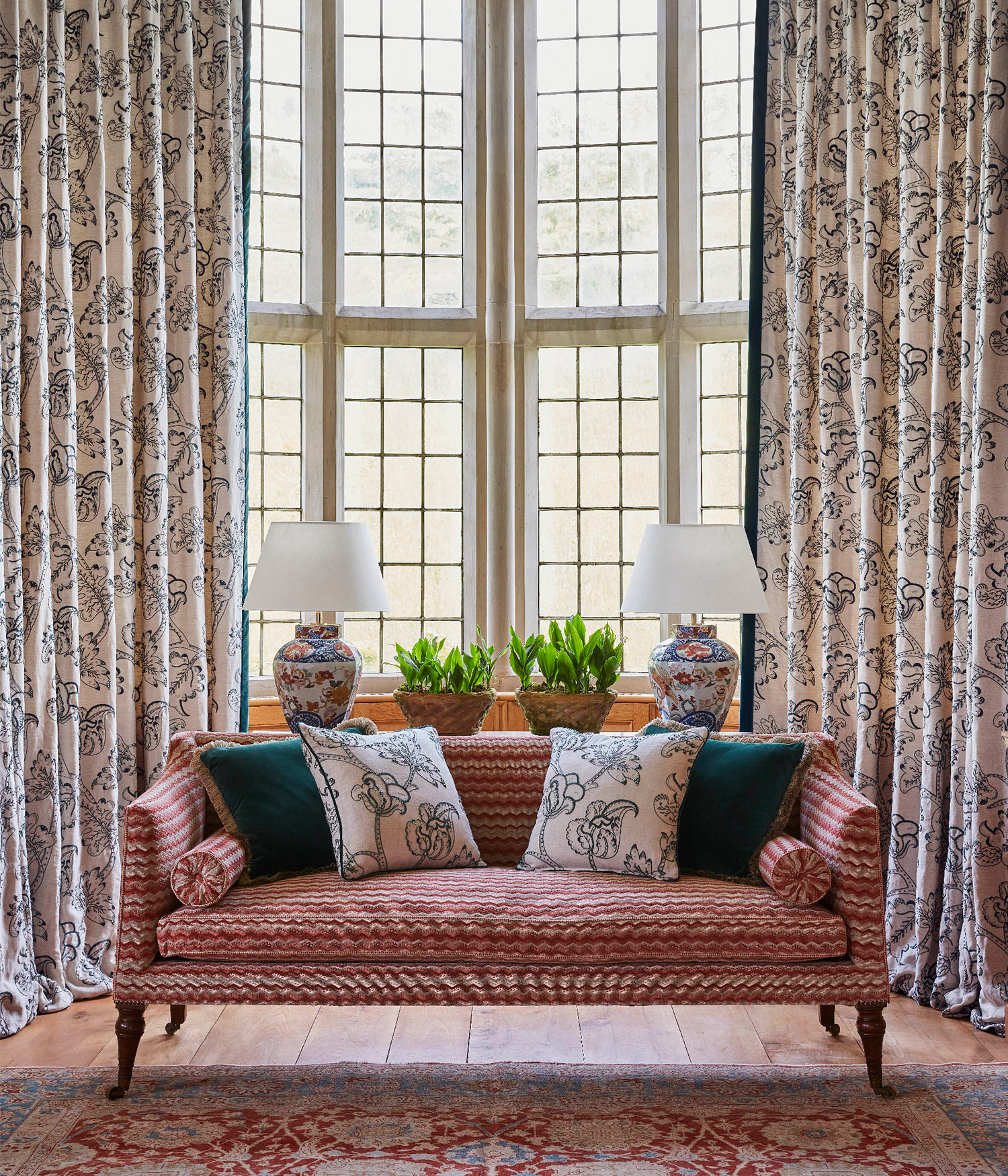 Espalier is a cut velvet jacquard with a bold zig zag design that will add texture and interest to an interior. With an excellent rub count, it is a hardwearing and durable option for upholstery. Available in 3 colours which perfectly coordinate with the decorative fabrics from the Orangery collection.