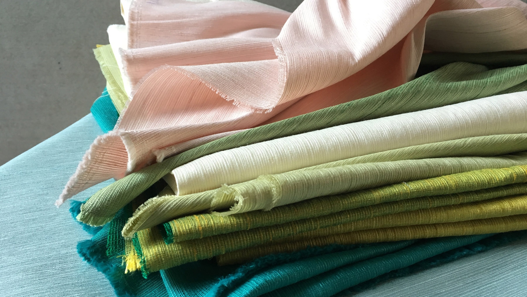 This faux silk emulates the look and feel of a real wild silk with the distinctive natural slub running across the weft of the cloth. Available in a wide range of shot and flat colours from soft neutrals to stong greens and yellow, lavender, pinks, terracotta and denim. It has the additional benefits of being washable and is therefore suitable for all sorts of environments. Suitable for wallcoverings.