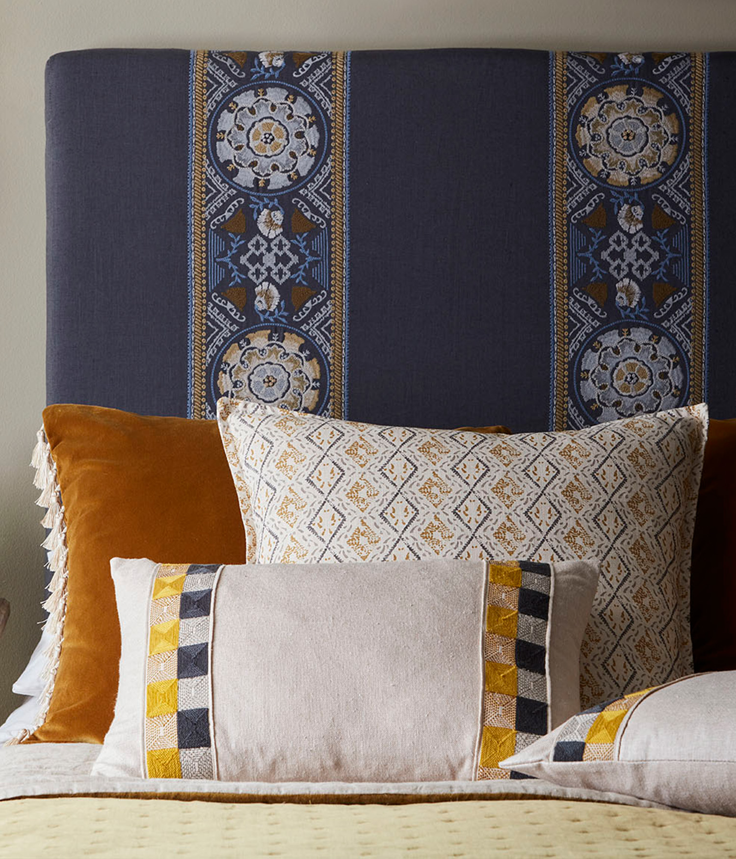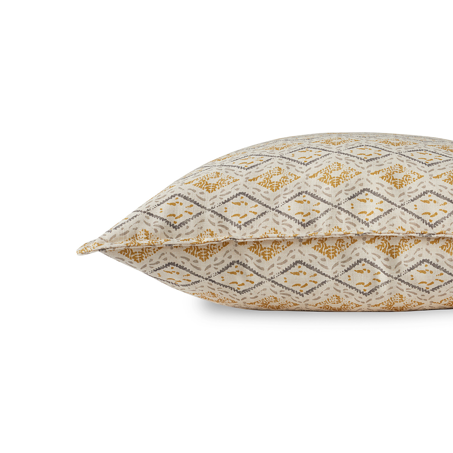 Add a touch of tailored elegance to your decor. This Dacca cushion boasts a soft geometric hand block look featuring a smart Oxford edge. Designed, digitally printed and handmade in England. Available in 2 colourways with a discreet concealed zip. Pattern placement may vary. Fillers sold separately.
