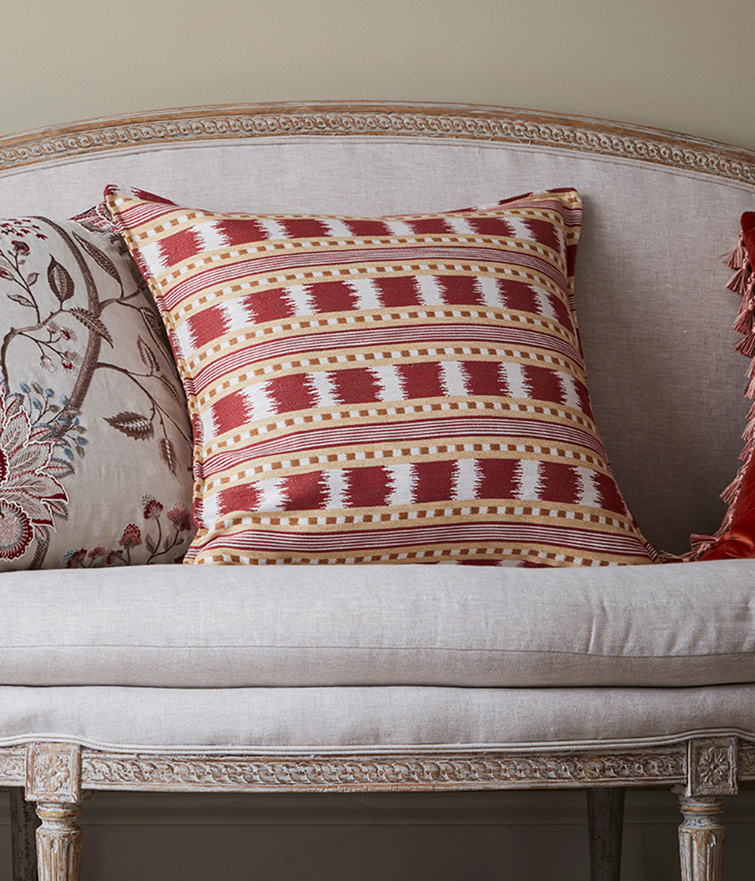 A bold ikat stripe adds a touch of vibrancy and a bold focal point. Designed to coordinate seamlessly with the other James Hare cushions, Paxton exudes a timeless elegance and will transform any interior. Impeccably finished with a smart oxford edge and a discreet concealed zip, available in 2 striking colourways. Designed and handmade in England. Pattern placement may vary. Fillers sold separately.