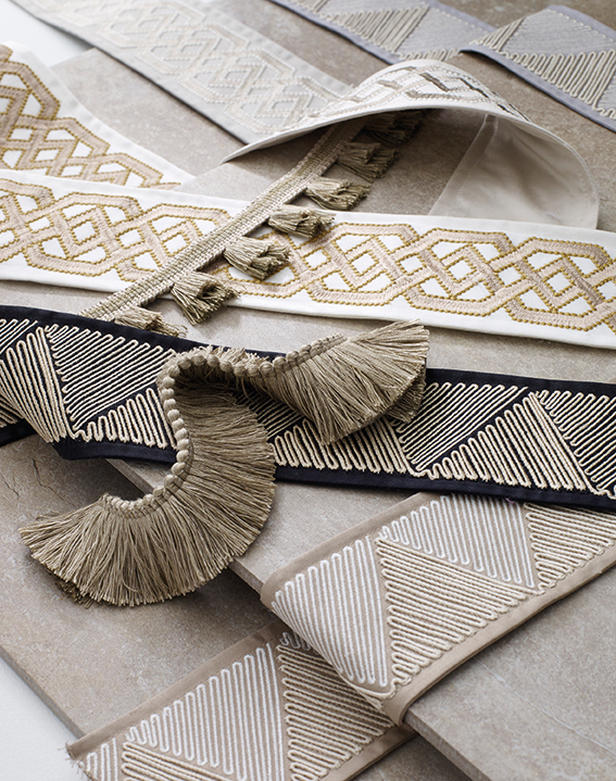 Double fringe combines matt and bright yarns to create a beguiling blend that will bring interest and texture to any of the plain fabrics in the James Hare collection.